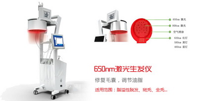 刺激毛囊:650nm激光能有效刺激80%处于冬眠期状态的毛囊,并激发为 活跃状态,以达到减少脱发的及令头发再生的效果。